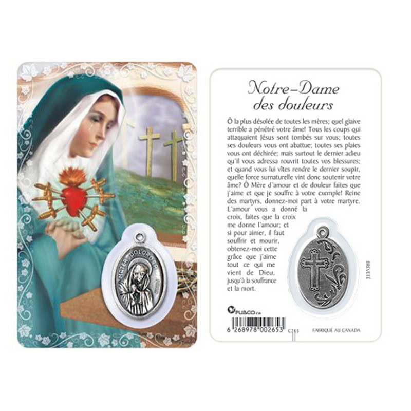 Confiez vos souffrances à Notre-Dame des Douleurs avec cette carte prière réconfortante et pleine de compassion.