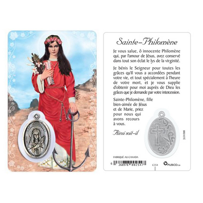 Recevez la force et la protection de Sainte Philomène grâce à cette carte prière inspirante.