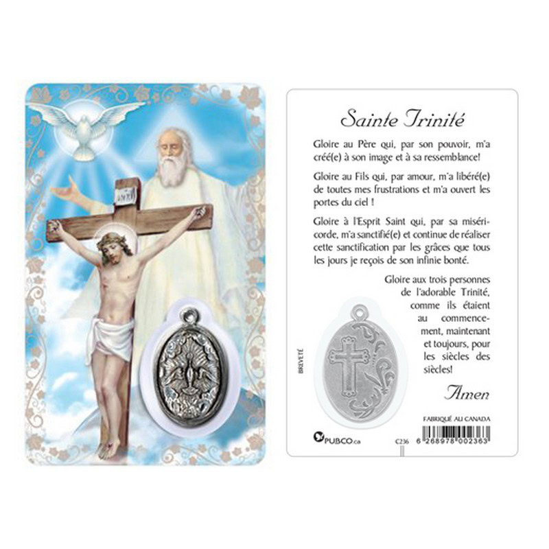 Célébrez l’unité divine de la Trinité avec cette carte prière catholique, parfaite pour votre dévotion.