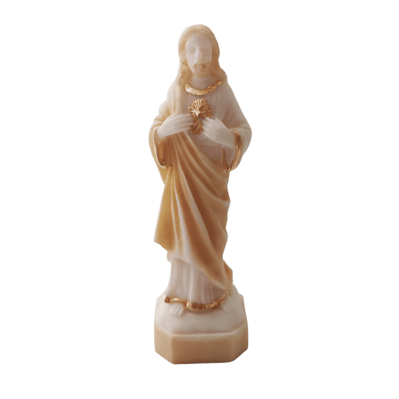 Statue Sacré-Cœur de Jésus – Beige et Or 13cm – Amour & Miséricorde
