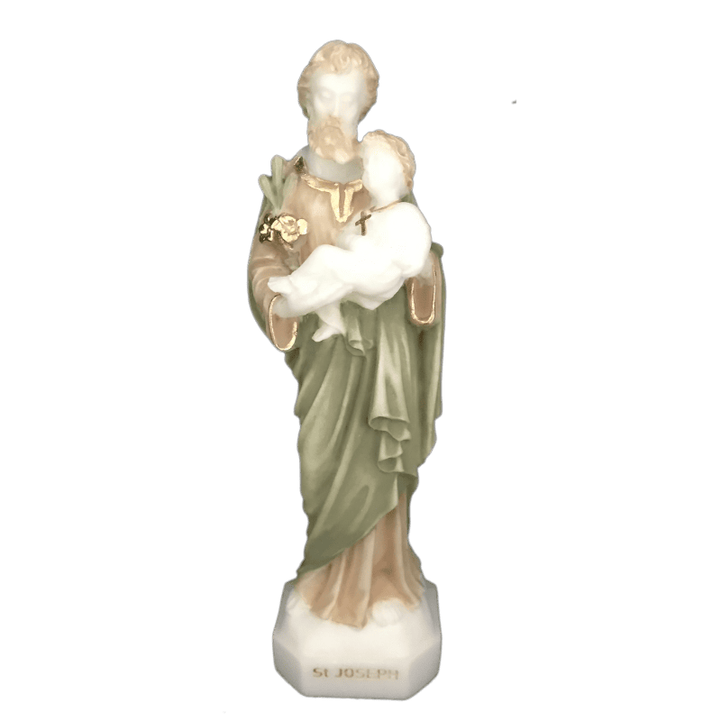 Saint Joseph, père nourricier de Jésus, symbolise la protection familiale et la sagesse humble. Cette statue invite à la confiance et à la stabilité spirituelle.