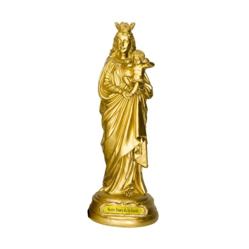 Cette statue Notre-Dame de la Garde 20 cm couleur or incarne la protection maternelle, la lumière et l’espérance, pour accompagner votre quotidien d’une présence rassurante et sacrée.