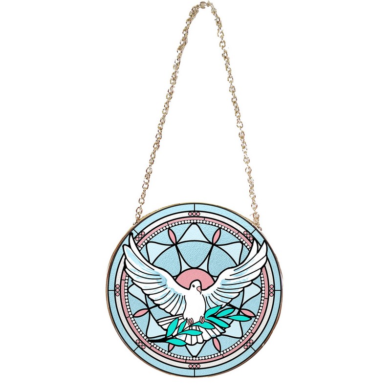 Ce vitrail mural religieux en verre (diamètre 114 mm) apporte une touche spirituelle, lumineuse et symbolique à votre intérieur. Grâce à sa ventouse discrète, il se fixe facilement sur une fenêtre, un miroir ou un mur lisse, laissant filtrer la lumière à travers ses couleurs inspirées des vitraux d’église.