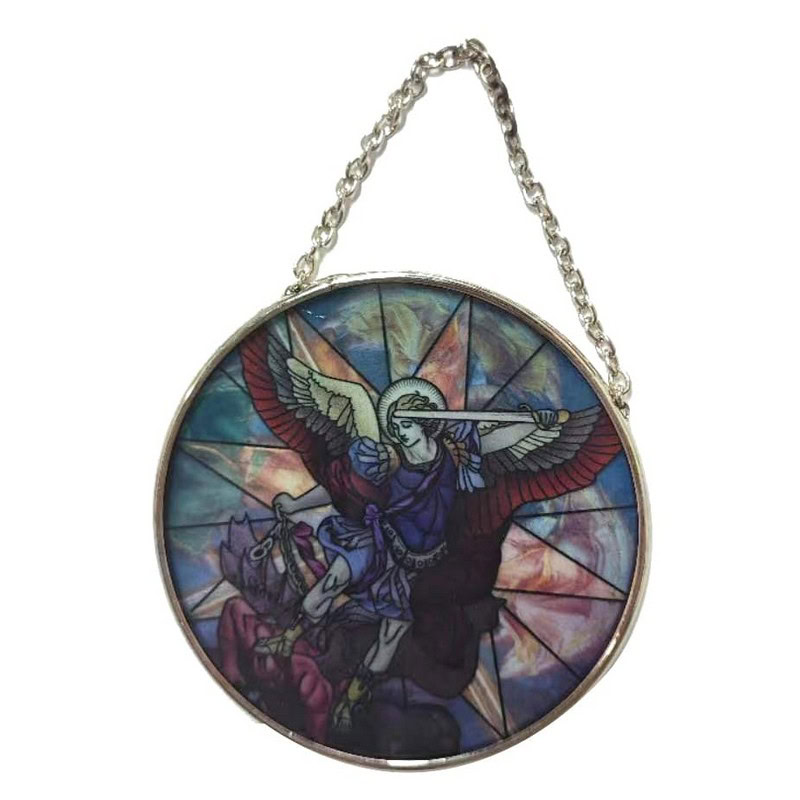 Chef des armées célestes, Saint Michel est l’archange guerrier par excellence. Un vitrail protecteur pour éloigner les forces négatives et renforcer la foi.